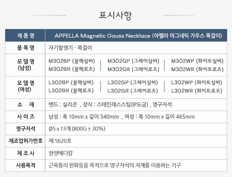 [km]아펠라 마그네틱 가우스 목걸이 L302BP 요약정보 및 구매